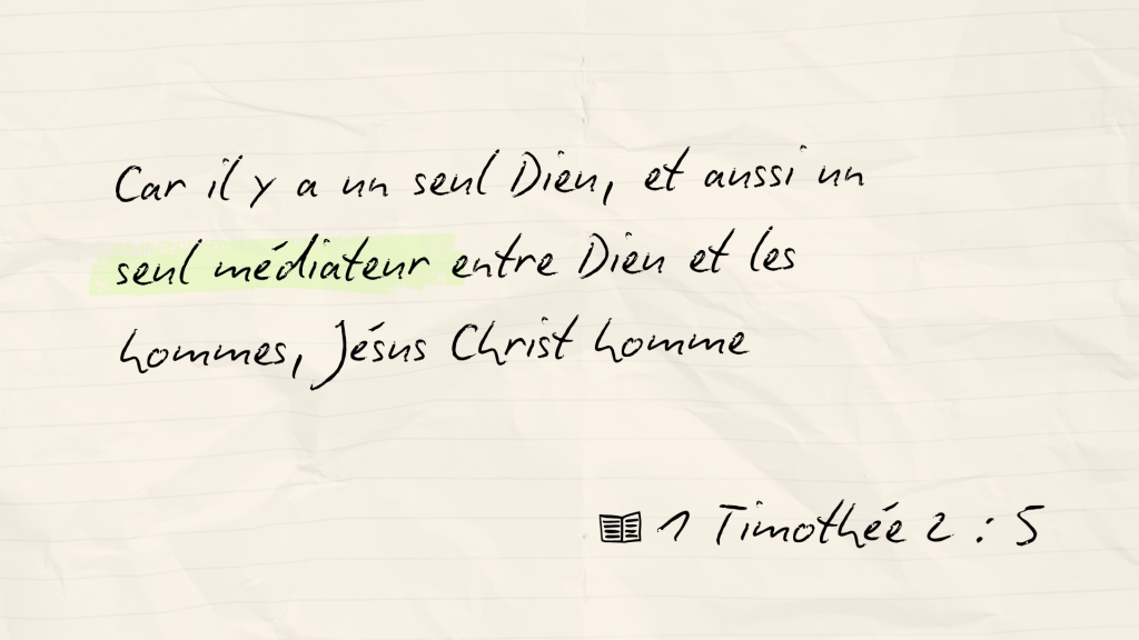 Nous croyons que Jesus-Christ Fils unique de Dieu de toute éternité est seul médiateur entre Dieu et les hommes.